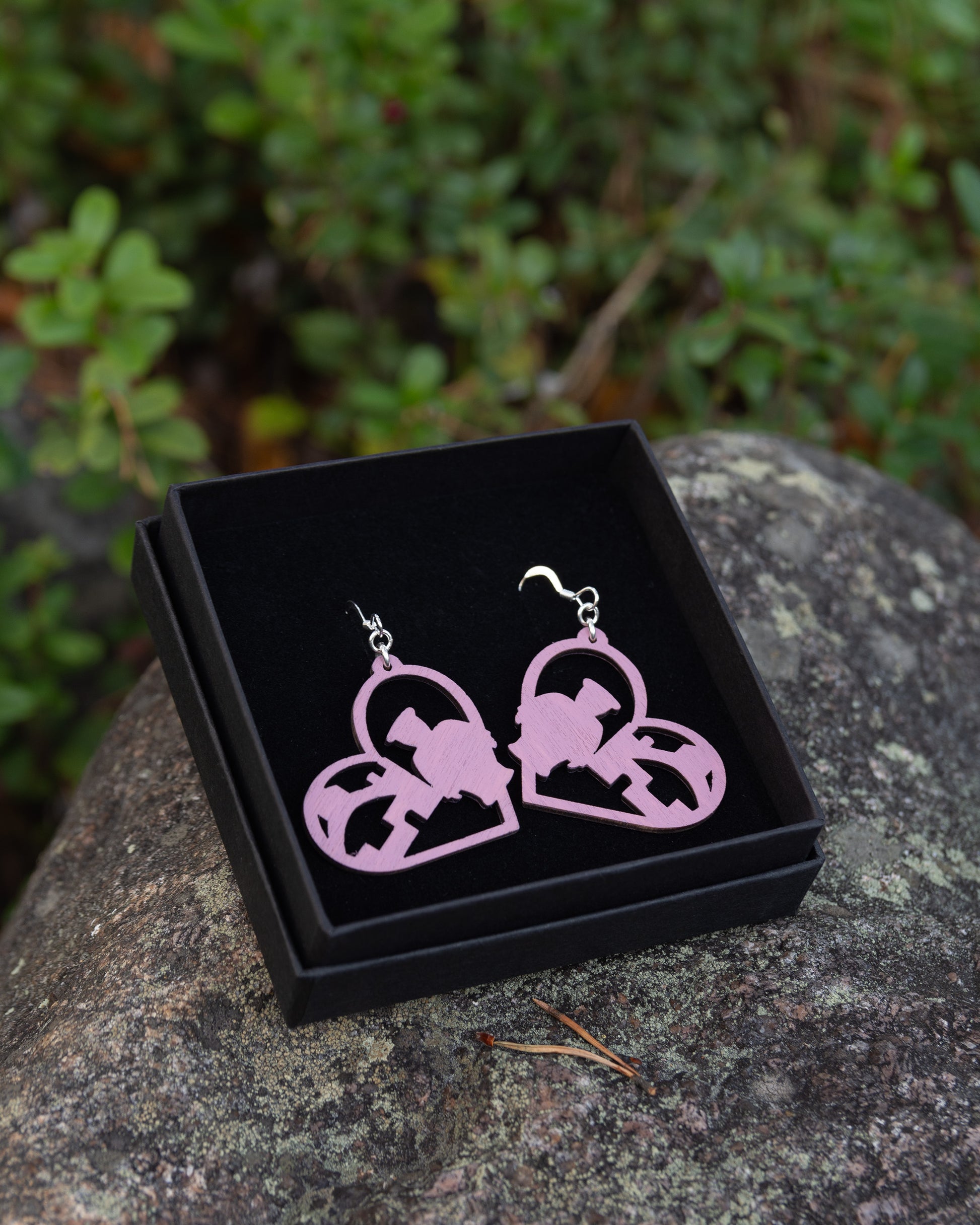 Mustikkamaidon sävyiset Oulu LOVE -vanerikorvakorut