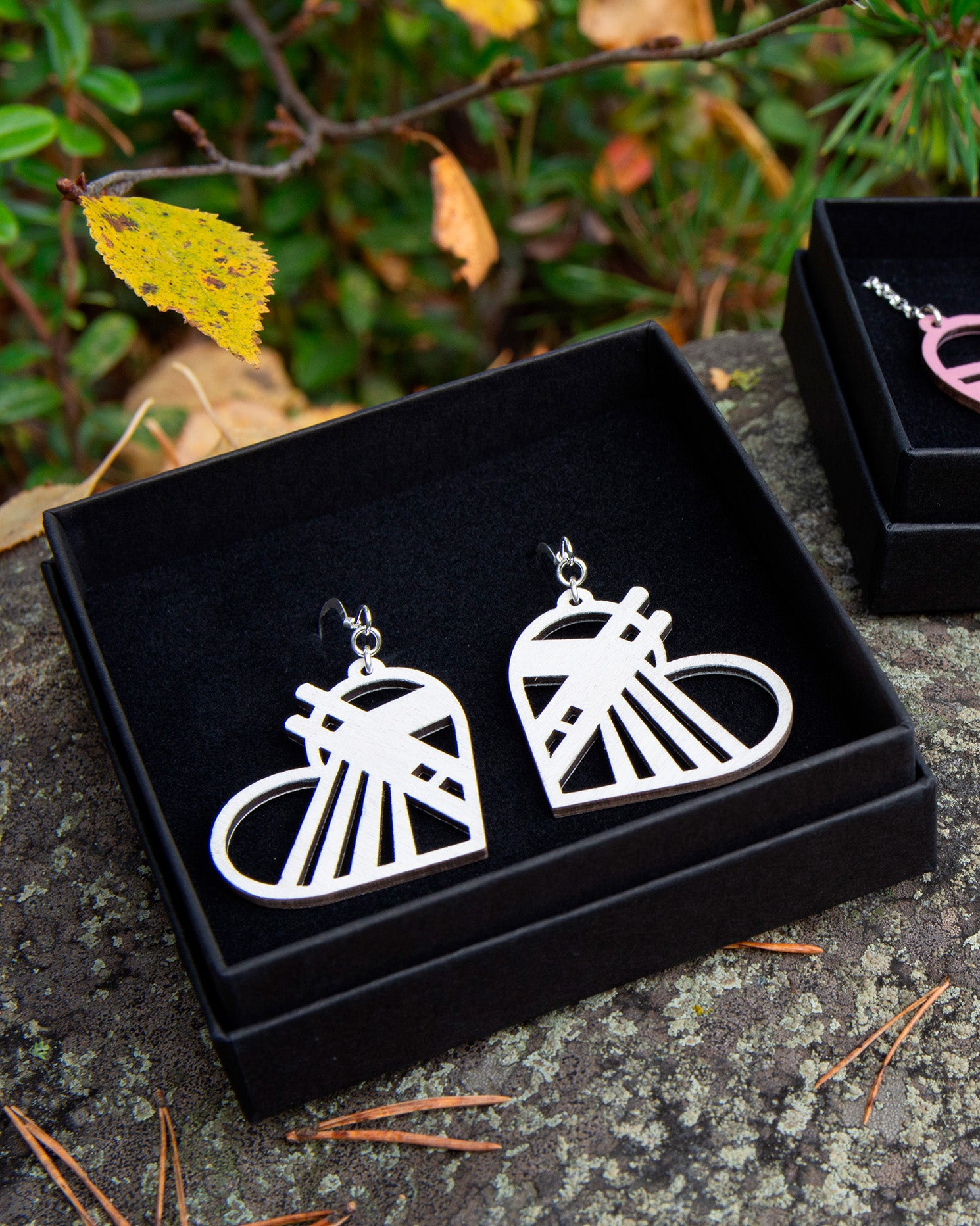 Nämä ihastuttavat Rovaniemi LOVE -malliston vanerikorvakorut kertovat tarinaa kantajansa rakkaudesta Rovaniemeen. Koruja on inspiroinut Riia Valvimon suunnittelemat hopeiset Jätkä-korut. Vanerikorvakorut ovat sekä näyttävät että erittäin kevyet kantaa. Jätkä-korut ovat alkujaan saaneet inspiraation Rovaniemellä sijaitsevasta Jätkänkynttilä-sillasta. Korut ovat ihana lahjaidea hänelle, joka on lähtöisin Rovaniemeltä. Korun koukut ja lenkit ovat 925-hopeaa. Valmistettu Rovaniemellä.